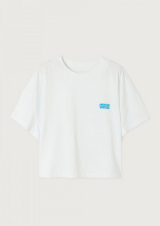 Het Gixy T-shirt van American vintage is een ruimvallend, kort model van compact en zacht katoen met een moderne ronde hals en subtiel logo, dat moeiteloze luxe toevoegt aan elke casual look. White