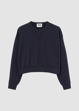 TRVL dress - cotton cropped sweater in blauw Indigo