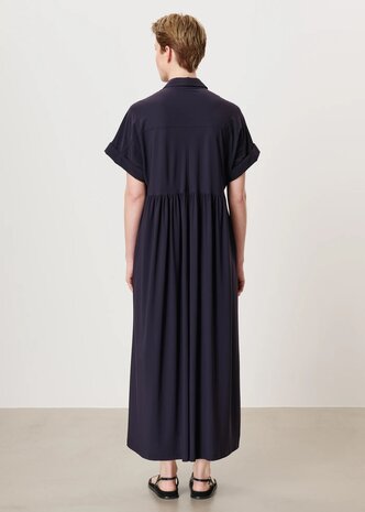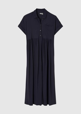 Trvl dress jurk in marine donker blauw. De kwaliteit van TRVL dress kenmerkt zich, door dat het wel een polyester is, maar van die hoogstaand kwaliteit, dat deze niet transpirerend draagt. Ink Blue