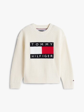 Tommy Hilfiger old school flag serie, wie kent hem niet en heeft er vroeger zelf niet ooit van van gehad?? Deze gave knit is te mooi.... 100% katoen Ivory
