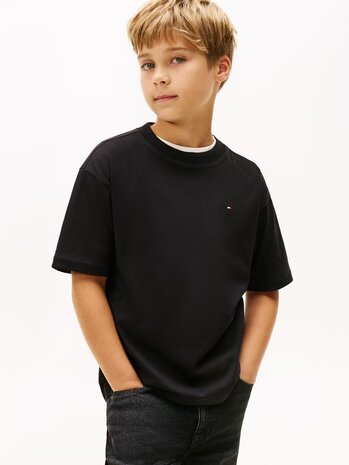 Tommy Hilfiger basis tshirt, met klein vlag op borst 100% katoen Black - zwart