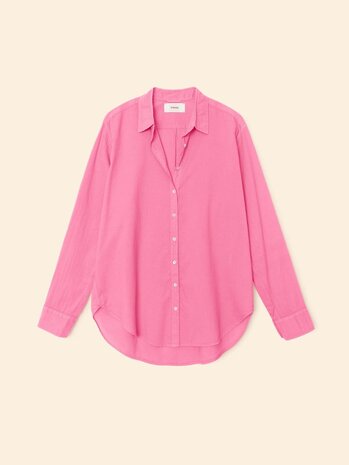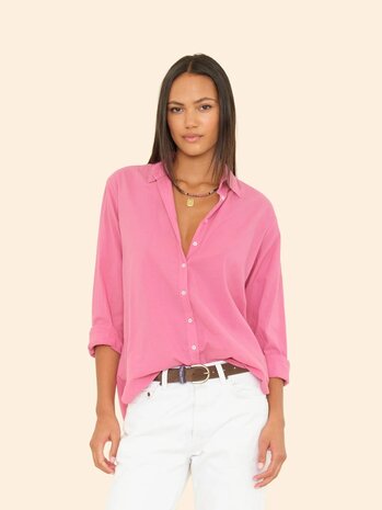 Typisch essentieel item is deze Xirena shirt. De Beau van Xirena is een essentiële basic. Het Beau Shirt is gemaakt van onze klassieke lichtgewicht geweven katoenen popelin voor een doorleefde look en feel. Het heeft een op herenkleding geïnspireerde vorm en is seizoen na seizoen een must-have. Berry Rose