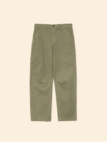 Xirena basis twill pants, een terug kerend item die altijd makkelijk combineerd, zowel met een sneaker als een hak. army green